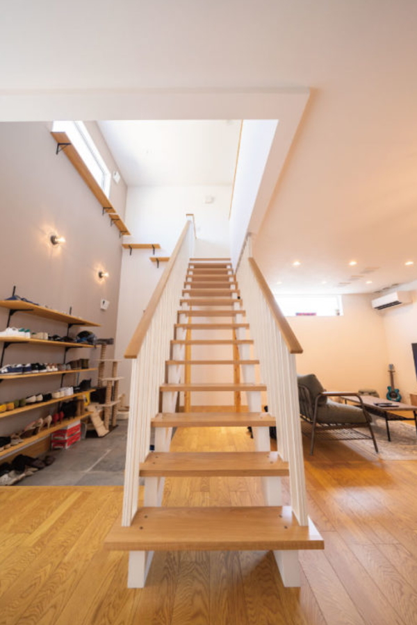 緩やかにスペースを区切る階段が印象的です。