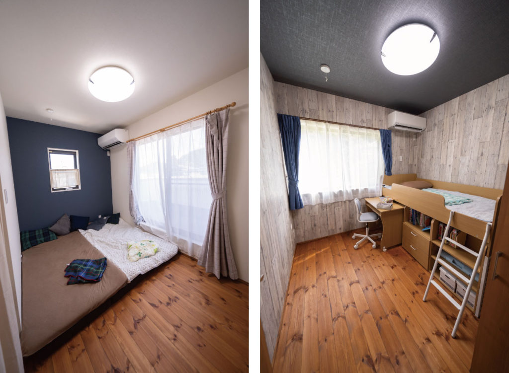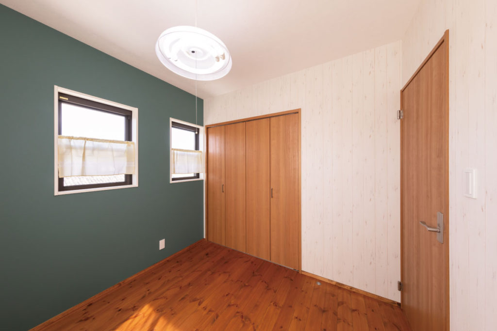 壁や天井にアクセントカラーを入れ、好みに合わせたしつらえに。