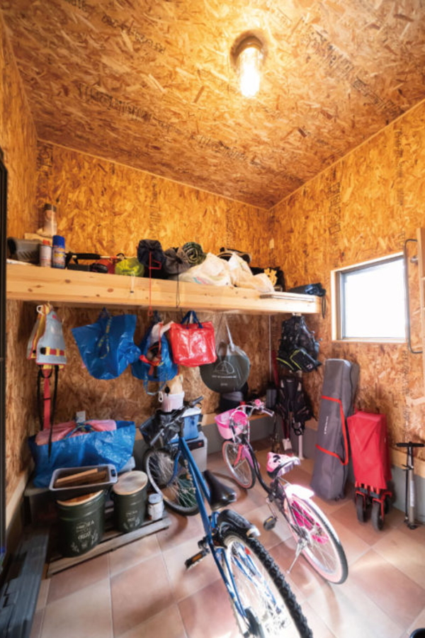「自転車をつるしたりできるようなスペースを」とのことで、ホビースペースも設けました。