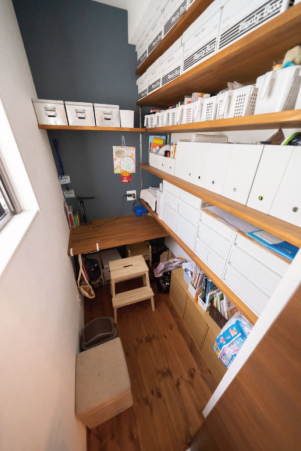 リビング湧きのワークスペースは、家族の雰囲気を感じつつ集中できる場所。