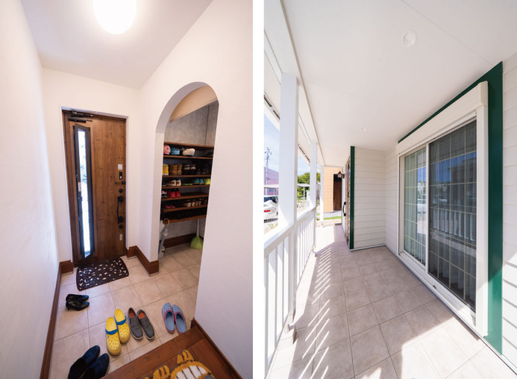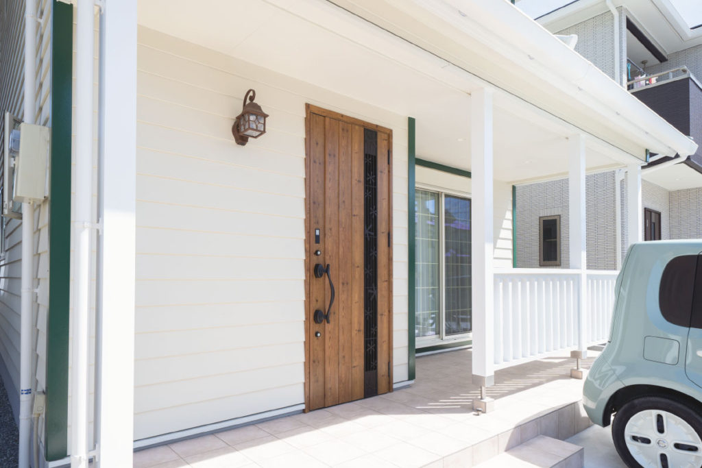 ファサードに2つの三角屋根を配し、カバードポーチが出迎える姿は、ひとめで異国の情緒を感じさせてくれます。