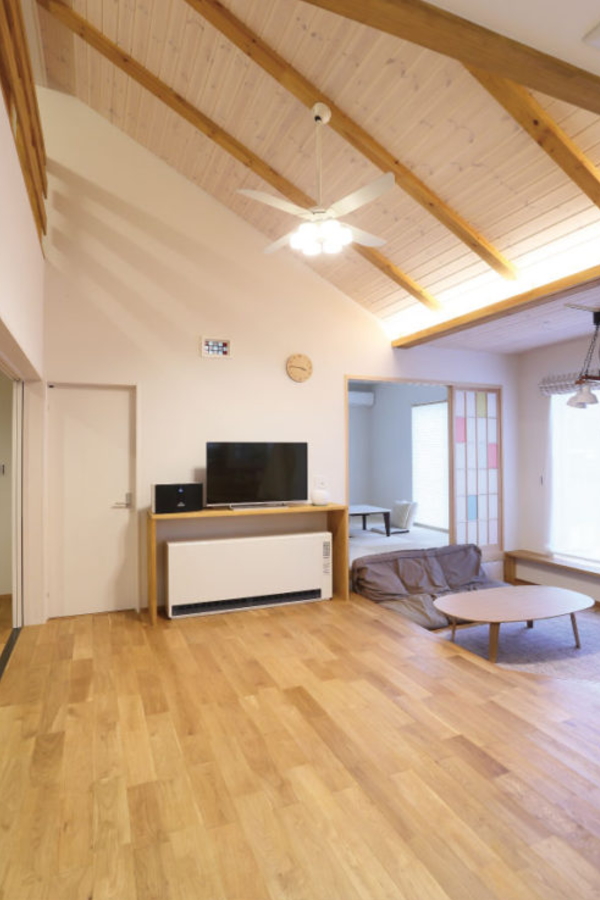 「リビングの広々とした空間と、自然素材を使った気持ちのいい空気が気に入ってます」と施主様。