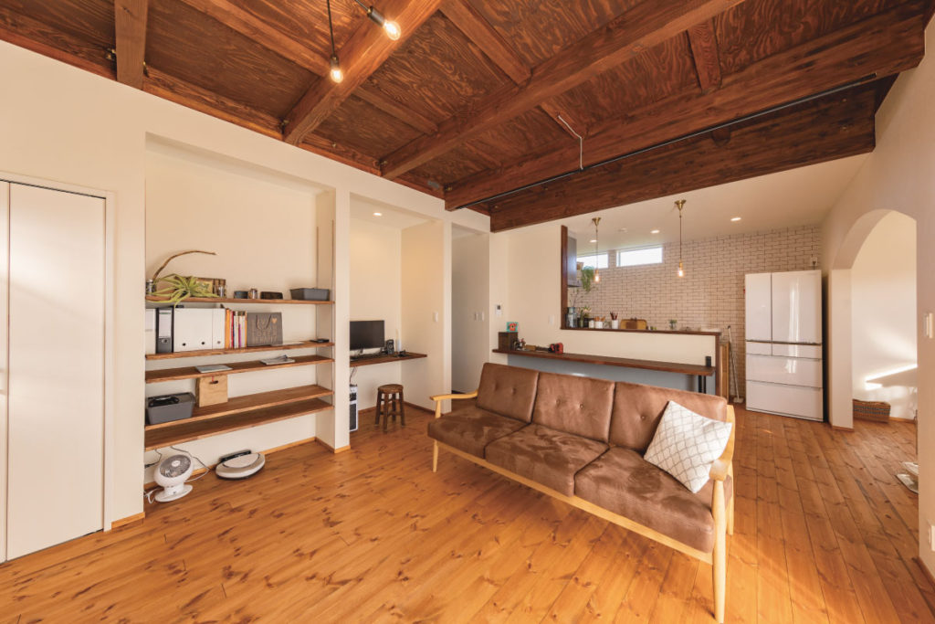 「施工途中であるリビング天井に魅せられ、梁を見せる形に急に変更した際にも
