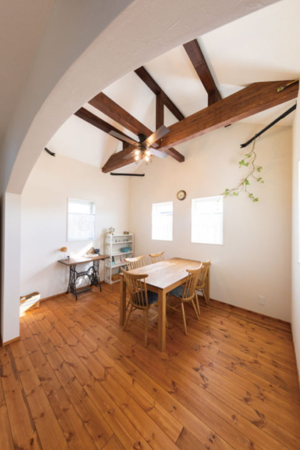 「見せ梁」ではなく構造をそのまま見せたいという要望を入れ、少し天井を高く、