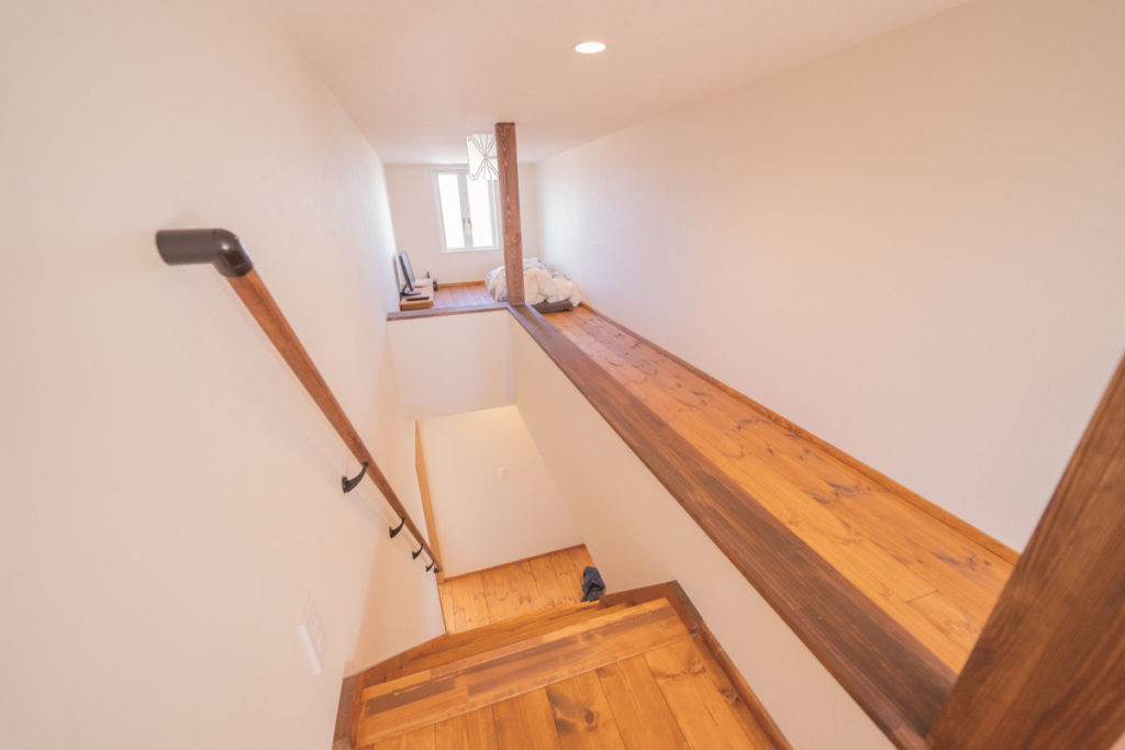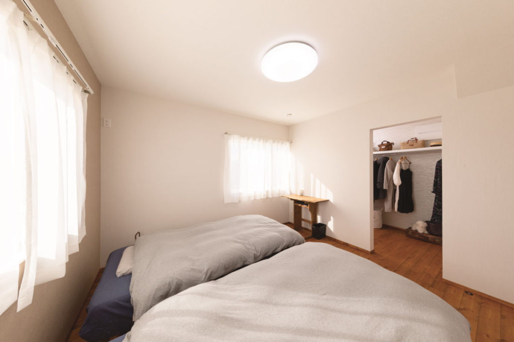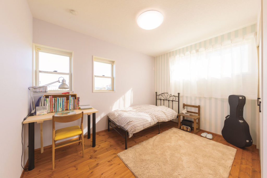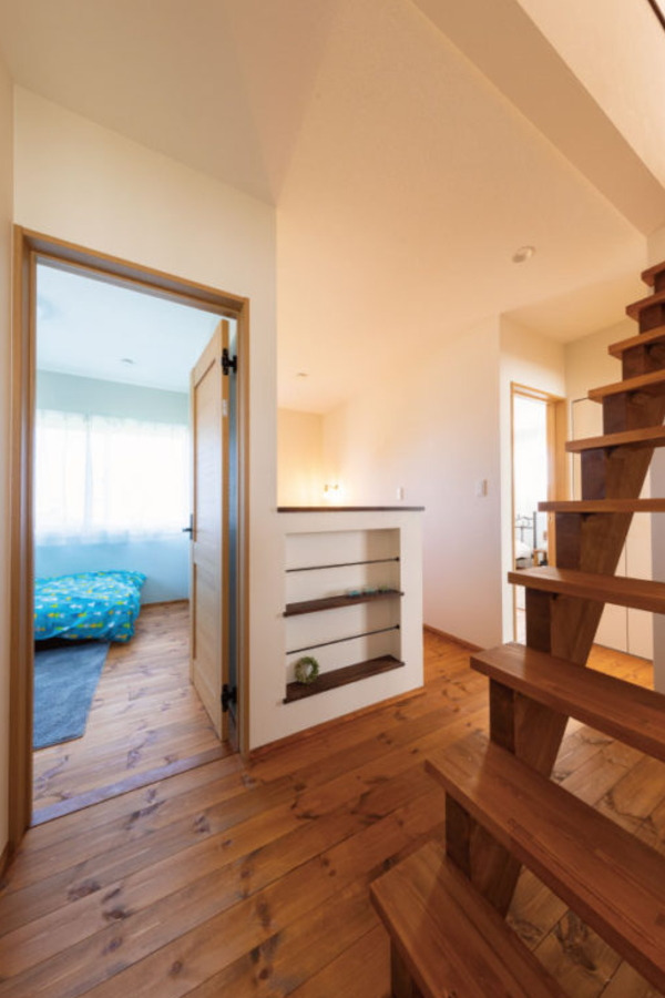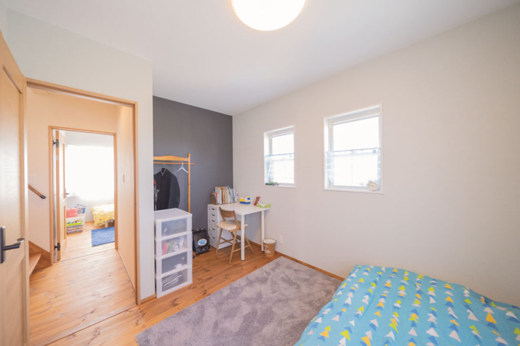 美しいアールの壁でリビングとは違った雰囲気に仕上がりました。